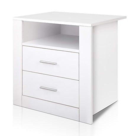 Artiss Bedside Table 2 Drawers - BODIE White