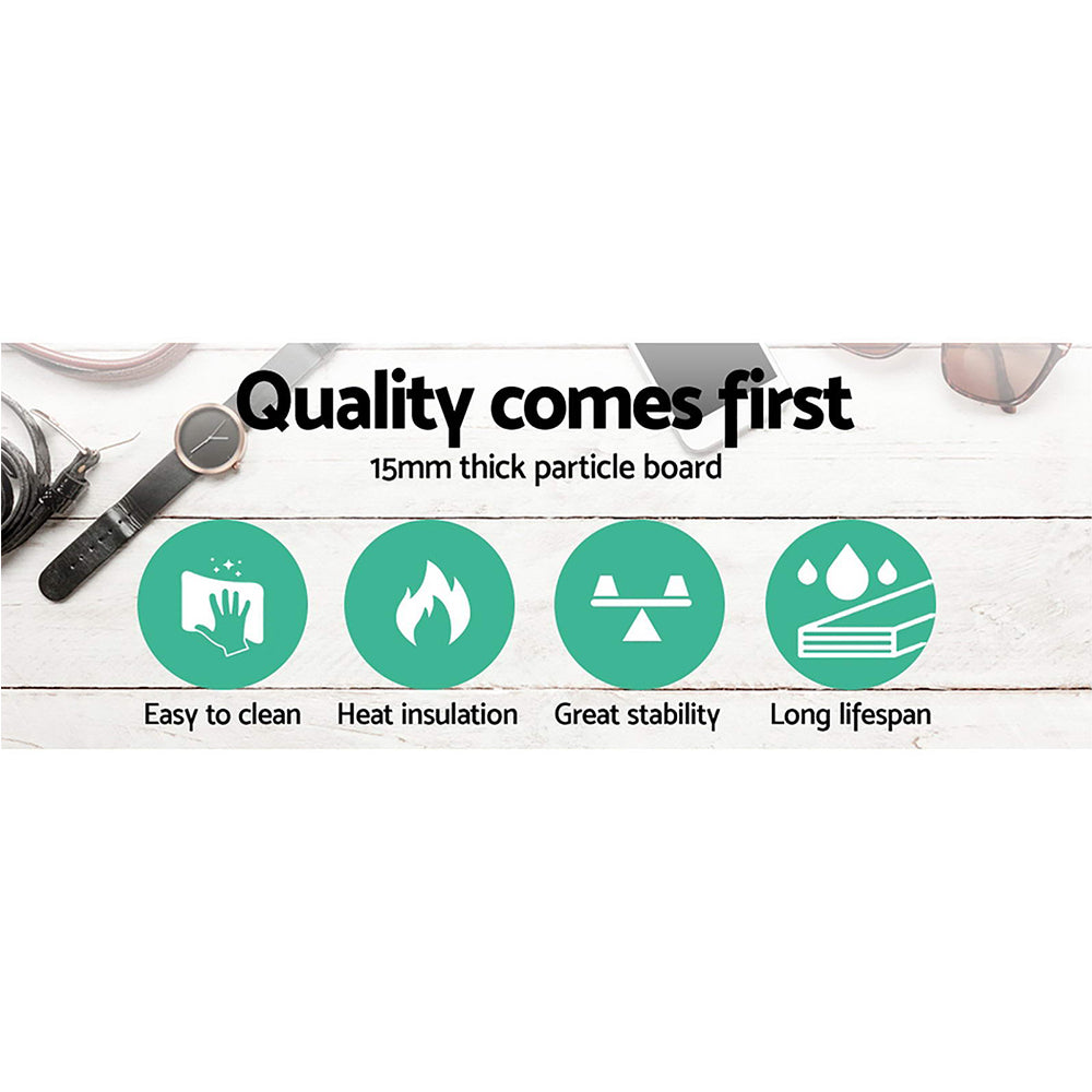 A design that is Scandinavian-inspired and while still reminiscent of decades-old influences, our Artiss 5-drawer Tallboy offers full functionality with subtle style. Made from quality particle board and a smooth paper veneer finish, the two-tone tallboy adds chic appeal to your décor and is the perfect choice to grace a dressing room, bedroom, living room or any other space in your home or establishment. The five generous-sized drawers provide ample space for all your clothing, fashion accessories, personal essentials and more. The splayed legs offer a unique, reliable stance, while the classic knob handles and smooth anti-rust metal drawer slides offer smooth, hassle-free use every time. Not sure this piece will suit your home? Take advantage of the latest 3D augmented reality technology to see it first hand – just scan the QR code on our website and decide for yourself!