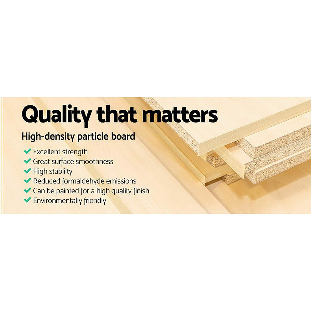 If you find yourself in need of some extra storage space, look no further than our practical and handsome Artiss 6-drawer Tallboy. With its effortlessly simple and contemporary design, this beauty is crafted from a 15mm thick particle board and features a flawless paper finish with PVC edging that will easily match your existing home decor. It provides plenty of storage space with six generously sized drawers for all your personal essentials. The drawers are easy to open and close, thanks to the anti-rust coated metal drawer runners that always ensure smooth operation, and the elegant double handles make it convenient to access the drawers without hassle. A modern classic, you can never go wrong with our Artiss 6-drawer Tallboy.