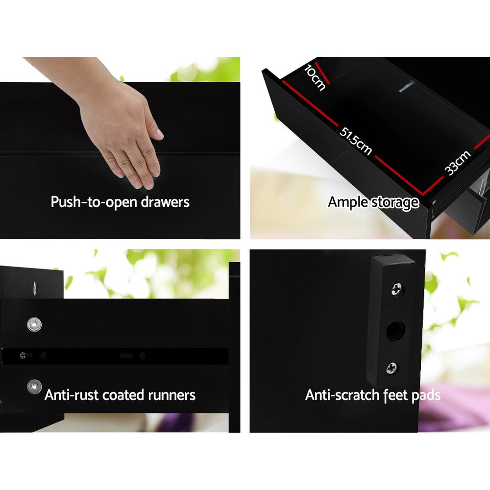 Artiss Bedside Table LED 2 Drawers - LUMI Black