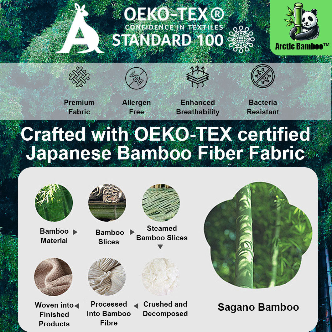 Crafted with OEKO-TEX certified Japanese bamboo fiber fabric, this innovation enhances the natural benefits of bamboo. It delivers:
