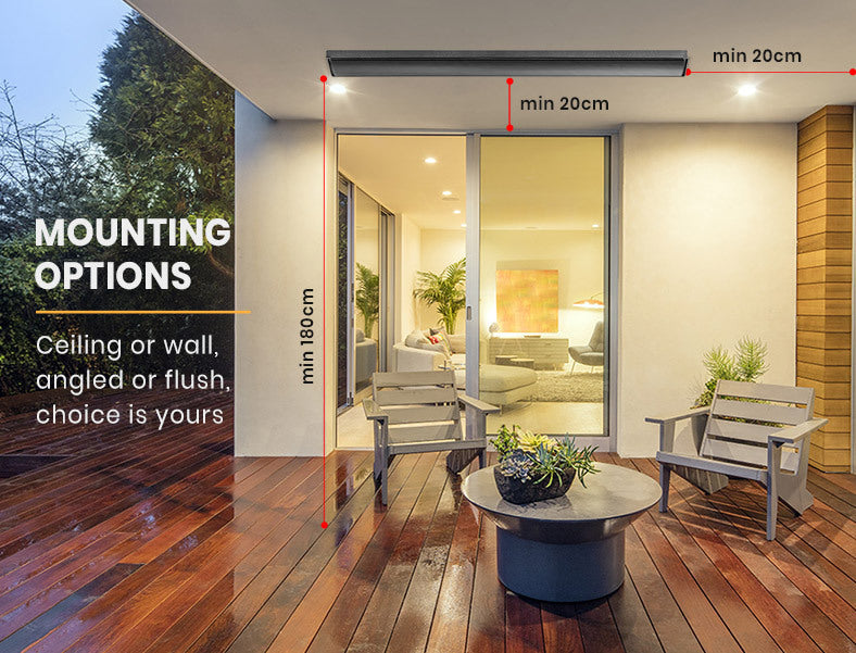 With silent operation and modern minimalist aesthetics, the ThermaStrip 32 electric heaters are sure to seamlessly integrate into any outdoor living space. Simple to install swivel brackets allow for the flexibility to mount the sleek strip heater undercover on walls, ceilings or beams.