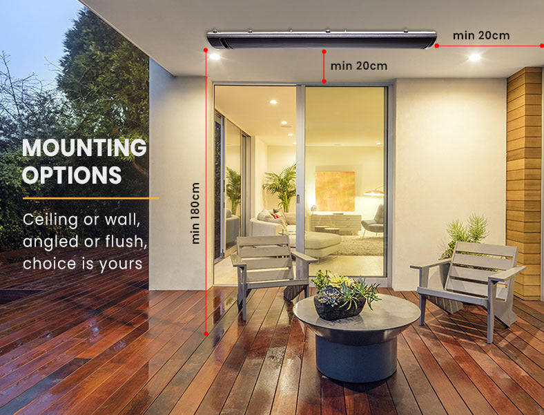 Easy to integrate into any outdoor living space, these electric heaters promise silent and maintenance-free operation. Equipped with a lead and plug for simple installation, they are designed with swivel brackets to allow for the flexibility to mount to almost anywhere undercover on walls, ceilings or beams and is operated using a single switch activation.