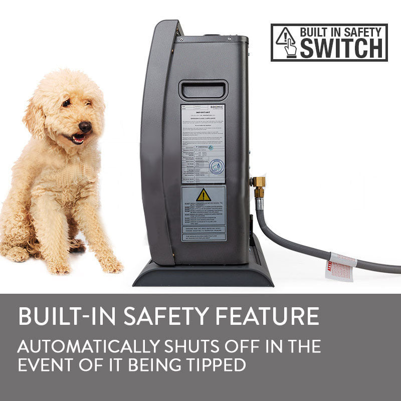 A 150cm easy-grip gas bayonet hose is included, and allows you to angle the heater to suit your requirements. For your peace of mind, a clever safety feature ensures that the unit will switch off immediately in the event of being tipped.