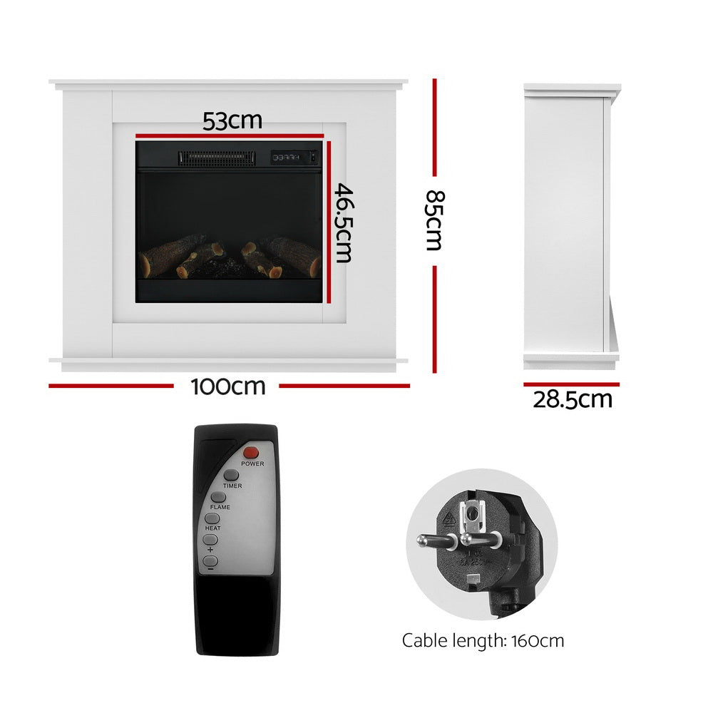 Devanti Electric Fireplace Fire Heater 2000W White