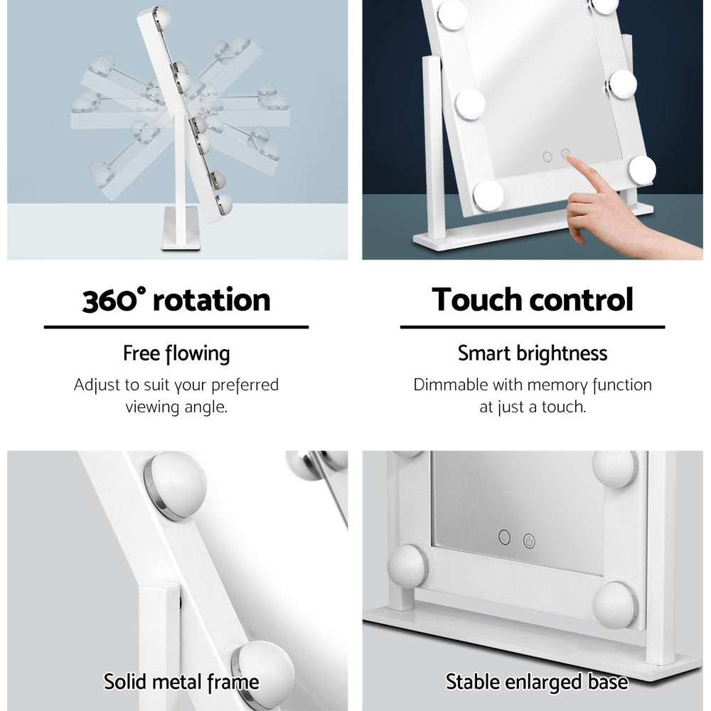 Fairest beauty looks even better with our Embellir Standing Makeup Mirror. Looking very much like a celebrity makeup mirror, our mirror features nine LED bulbs on its metal frame. The lights can be adjusted for brightness and colour, from cool white to warm white with its touch control, offering a soft and ambient glow to complement your true image. Better still, the mirror is totally rotable and stands on an enlarged base for added stability. Mirror your exceptional countenance with this lovely Embellir Standing Makeup Mirror. Get yours today.