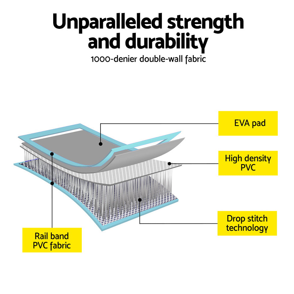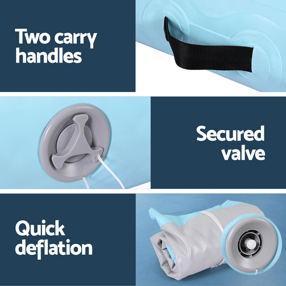 For hours of jumping, fighting and tumbling fun, the Everfit Air Track is a great addition to your home gym. Perfect for gymnastics, martial arts, yoga, cheerleading and more, the 1m air track is a versatile and essential tool for your training regime. Crafted with drop-stitched 1000-denier double-wall fabric, the Everfit air track ensures durability and stability during intense workouts. Softer than foam and designed for robust use, the air track won't twist or bend and helps to significantly reduce impact. Its anti-slip and wear-resistant surface provides a secure grip, allowing you to perform your moves with confidence. The integrated valve system allows for quick and easy inflation and deflation, while the compact roll-up design makes storage and transport a breeze. With two convenient carrying handles and a repair kit included, the Everfit 1m Air Track is the perfect choice for athletes seeking a reliable and portable training solution.