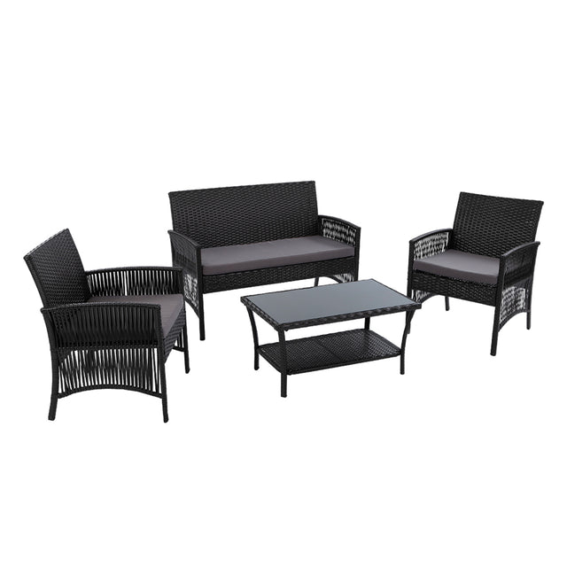 Gardeon 4PCS Outdoor Sofa Set Wicker Harp Chair Table Garden Furniture Black