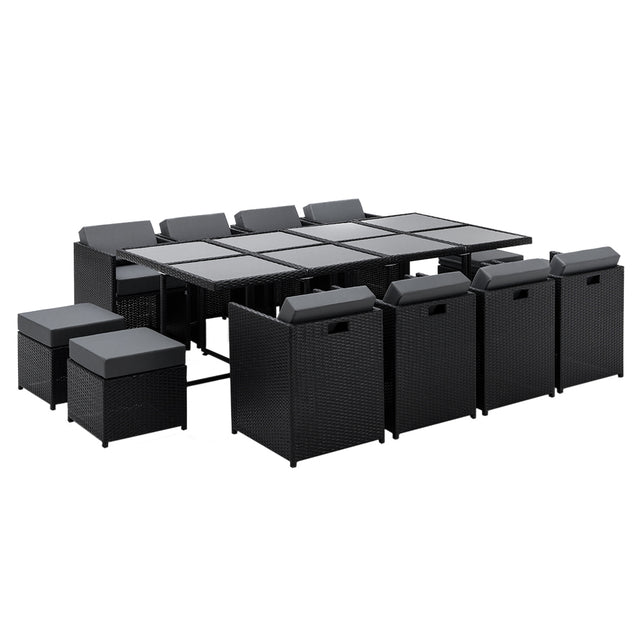 Gardeon Outdoor Dining Set 13 Piece Wicker Table Chairs Setting Black