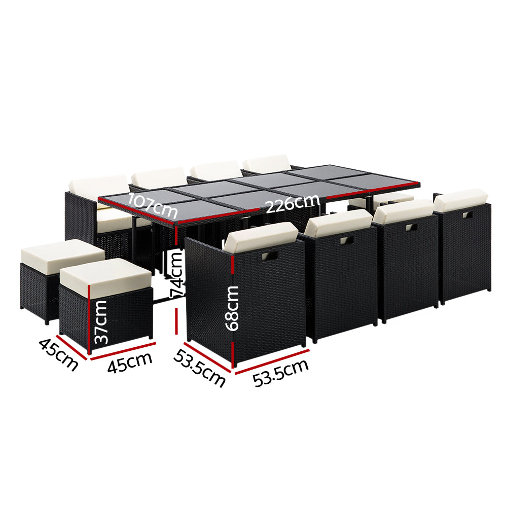 Gardeon Outdoor Dining Set 13 Piece Wicker Table Chairs Setting Black is backordered and will ship as soon as it is back in stock.