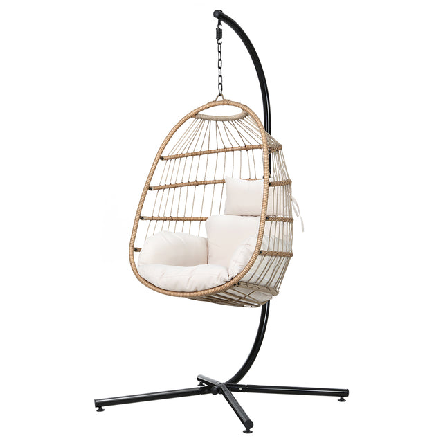 Gardeon Outdoor Egg Swing Chair Wicker Rope Furniture Pod Stand Foldable Yellow