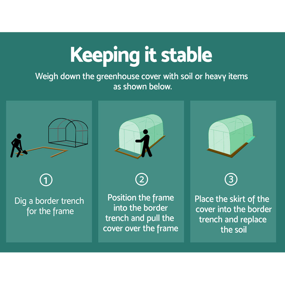 The retained radiated heat within the Greenhouse provides a natural source of heating for your greens, enabling them to grow better for a fruitful harvest anytime of the year. With its durable PE cover that comes with eight windows for ample ventilation, our Tunnel Greenhouse includes all the necessary fittings and accessories for a hassle-free set up.