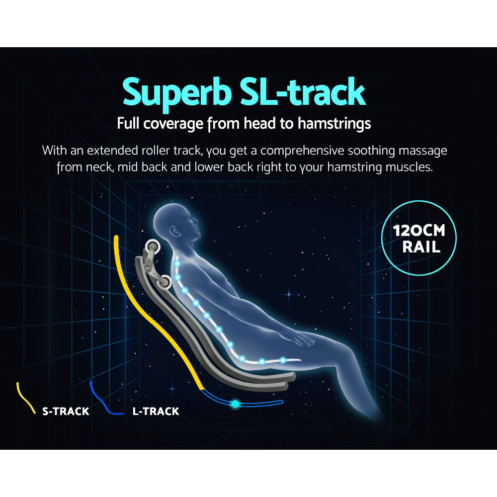 Incorporating the latest smart massage technology, our Livemor Ozeni Electric Massage Chair is designed to deliver a truly exceptional massage experience synonymous with the human touch. Among its many technological advancement is an extensive SL track that provides full body massage coverage from your head right to your hamstring muscles. The roller track actually follows the curvature of your spine and extends beyond to your thighs to ensure that all part of your body is amiss with its soothing massages. Better still, the massage chair also has an automatic body scanning function that maps out the key areas of neck and back for a consistent massage. With up to four full body massage programs, eight partial programs and eight complex massage techniques, you are certainly not lacking in choice. Adjustments can also be made for massage intensity and speed as well as width. Not least, you can get to enjoy your zero-gravity massage with your favourite music or eBook via a convenient bluetooth connection.