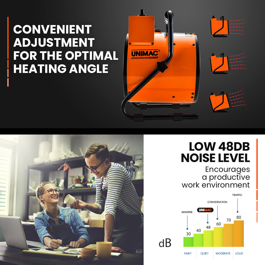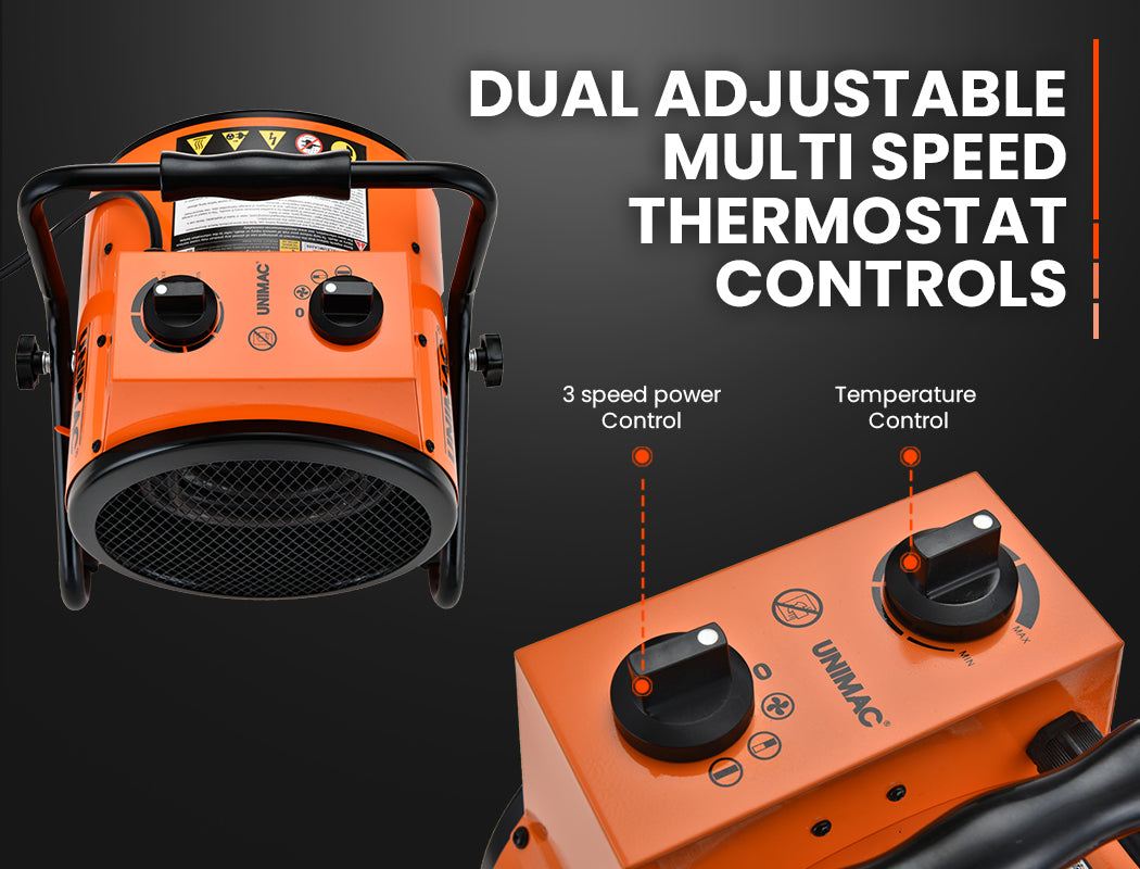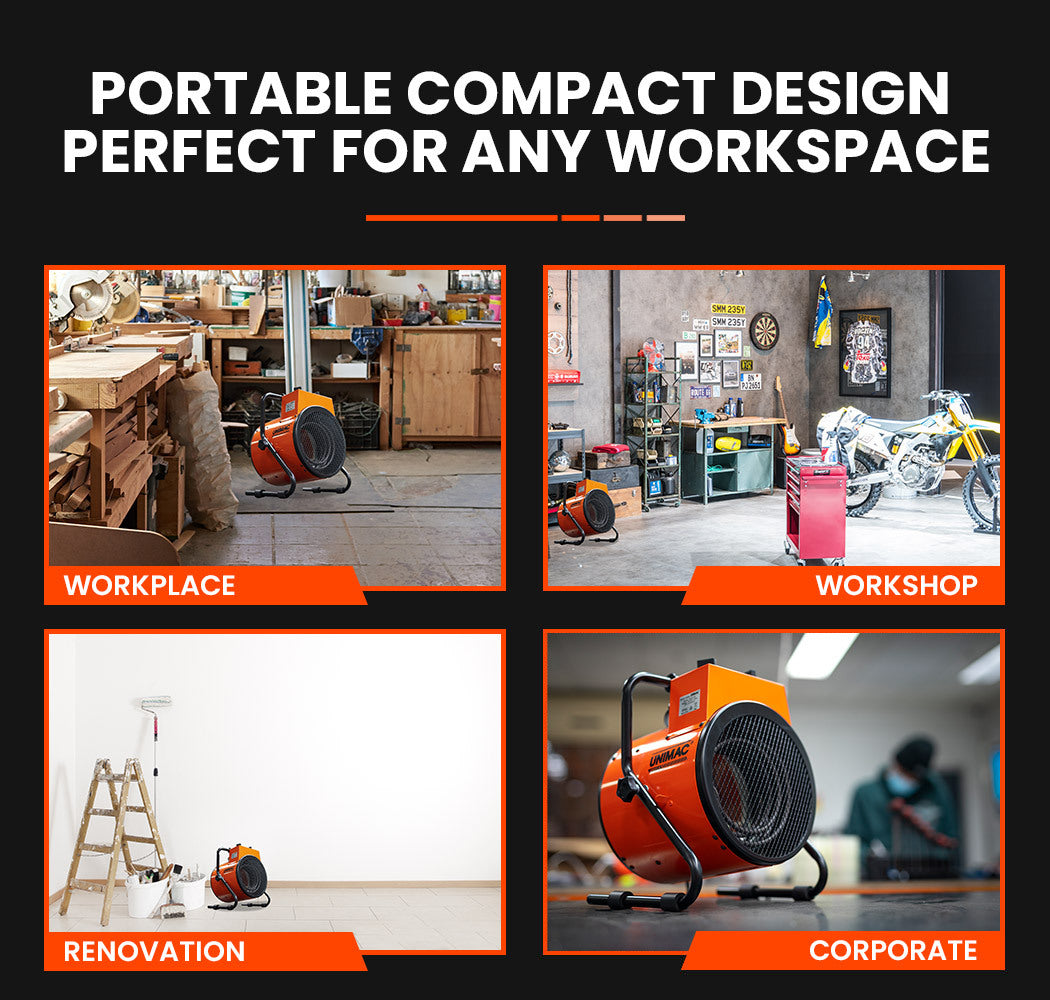UNIMAC 2400W Electric Space Heater Portable Small Fan Workshop Warehouse Blow Industrial Heating